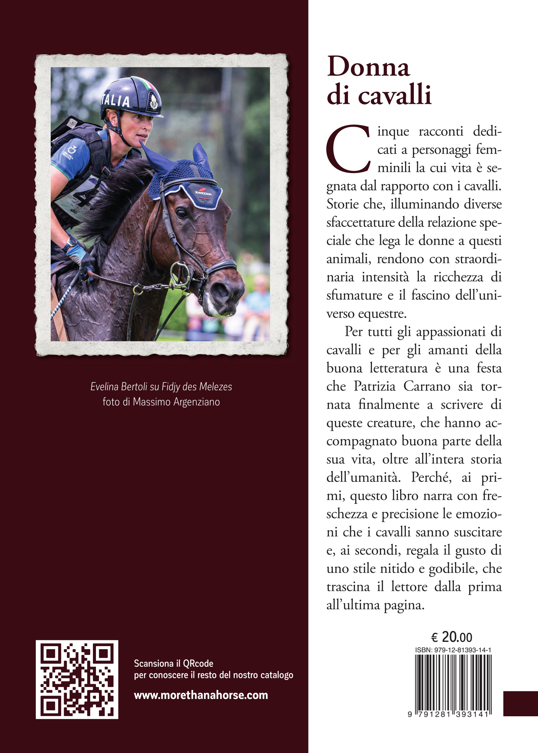 Cinque racconti dedicati a personaggi femminili la cui vita è segnata dal rapporto con i cavalli. Storie che, illuminando diverse sfaccettature della relazione speciale che lega le donne a questi animali, rendono con straordinaria intensità la ricchezza di sfumature e il fascino dell’universo equestre. Per tutti gli appassionati di cavalli e per gli amanti della buona letteratura è una festa che Patrizia Carrano sia tornata finalmente a scrivere di queste creature, che hanno accompagnato buona parte della sua vita, oltre all’intera storia dell’umanità. Perché, ai primi, questo libro narra con freschezza e precisione le emozioni che i cavalli sanno suscitare e, ai secondi, regala il gusto di uno stile nitido e godibile, che trascina il lettore dalla prima all’ultima pagina.